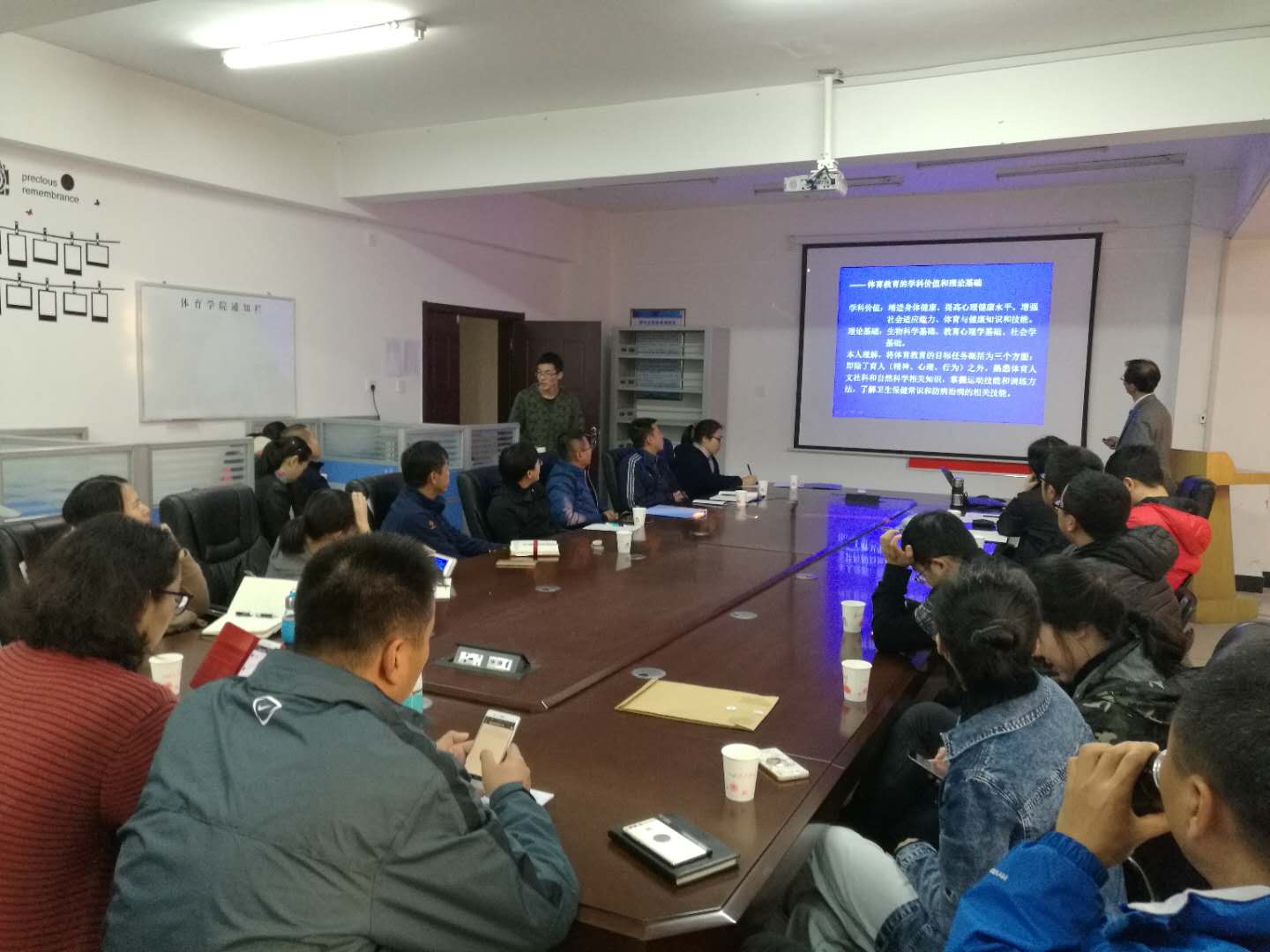 10月24日下午(周二),体育学院六层教室举办了一场题为“体育教育教学之思考”的教学沙龙,由体育学院教授刘鸿宇博士主讲。以“十九大报告中体育事业三项任务:全民健身、建设体育强国、办奥运会”开篇,刘鸿宇老师以全民健身为体育事业的核心为导向,就体育教育理念、教学技能和教学研究三个方面谈了学界共识和个人观点。