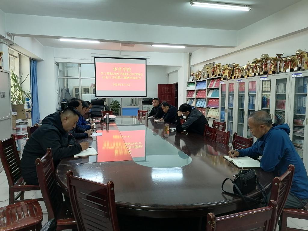 4月14日下午,体育学院党委在学院二层资料室召开学习贯彻习近平新时代中国特色社会主义思想主题教育动员部署会,认真学习校党委下发的《关于在全校深入开展学习贯彻习近平新时代中国特色社会主义思想主题教育实施方案》。学院领导班子成员、党委委员、各党支部书记出席会议,会议由党委书记曹电康主持。