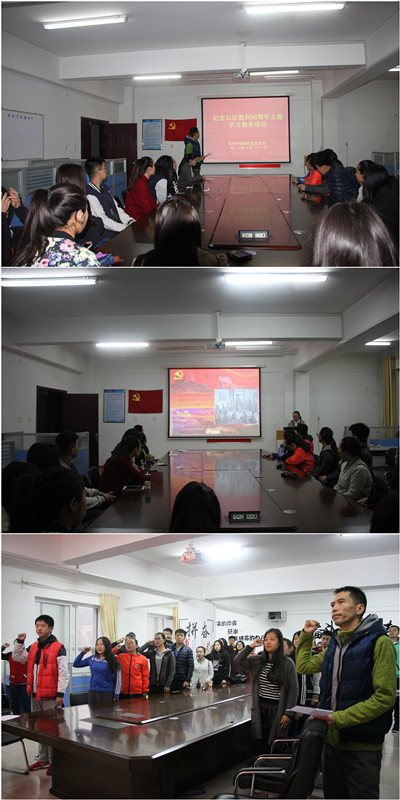 2016年10月22日上午,体育学院研究生党支部组织党员、预备党员以及积极分子,在研究生教室开展纪念红军长征胜利80周年主题教育活动。