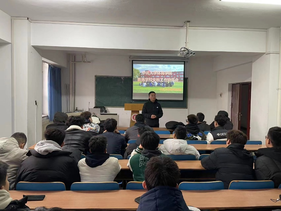 为了促进体育学院首邑学校支教团队的专业素质成长,切实提高支教团队工作管理水平,2023年2月24日下午,体育学院在院楼一层多媒体教室召开了新学期首邑学校支教工作动员会,会议由学生科科长李士荣主讲。
