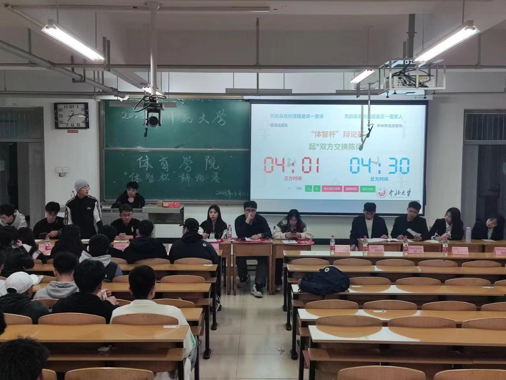 为丰富我院学子的校园文化生活,锻炼思维与表达能力,培养明辨是非、捍卫真理的优良品质,3月12日晚,体育学院在15202H教室举办了“体智杯”辩论赛,比赛由学生会主席刘文松主持。