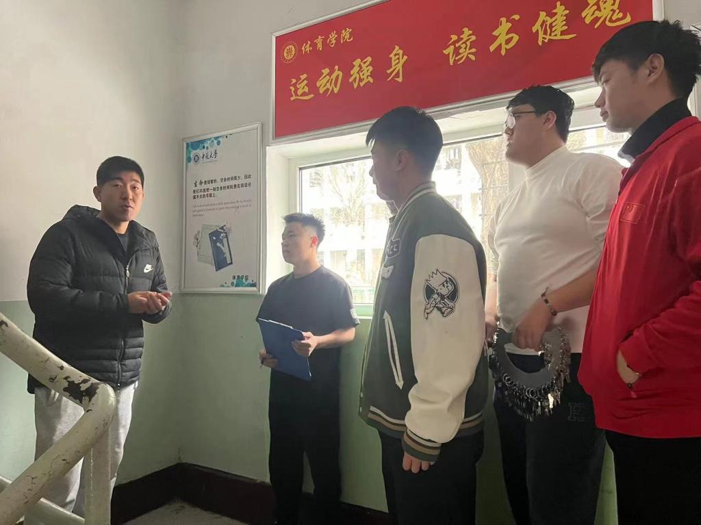 2月28日、3月4日,辅导员、班主任带领学生党员,对体育学院学生宿舍开展了新学期安全卫生大检查。本次检查重点对宿舍楼及宿舍内的安全隐患进行了排查,并对卫生环境进行了检查,在检查过程中对学生进行了安全教育,增强学生的安全意识和责任感。