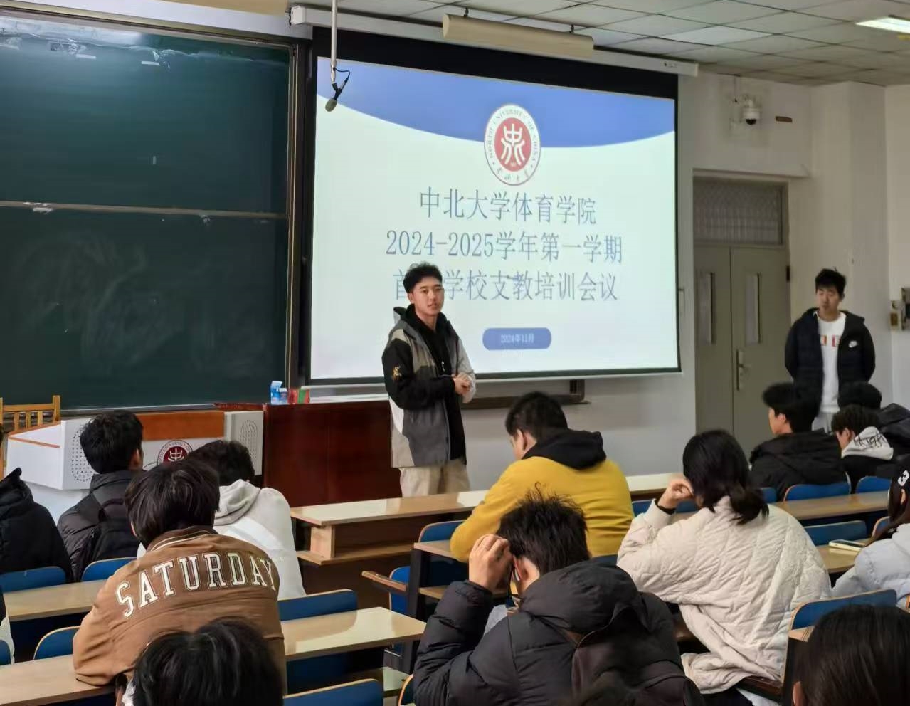 为进一步提升阳曲首邑学校支教团队的业务能力,提高支教教学质量,2024年11月4日中午,体育学院在11306h教室召开了阳曲首邑学校支教工作培训动员会,会议由负责老师李佳怿及学生会主席康鑫泽主讲,全体支教学生参会。