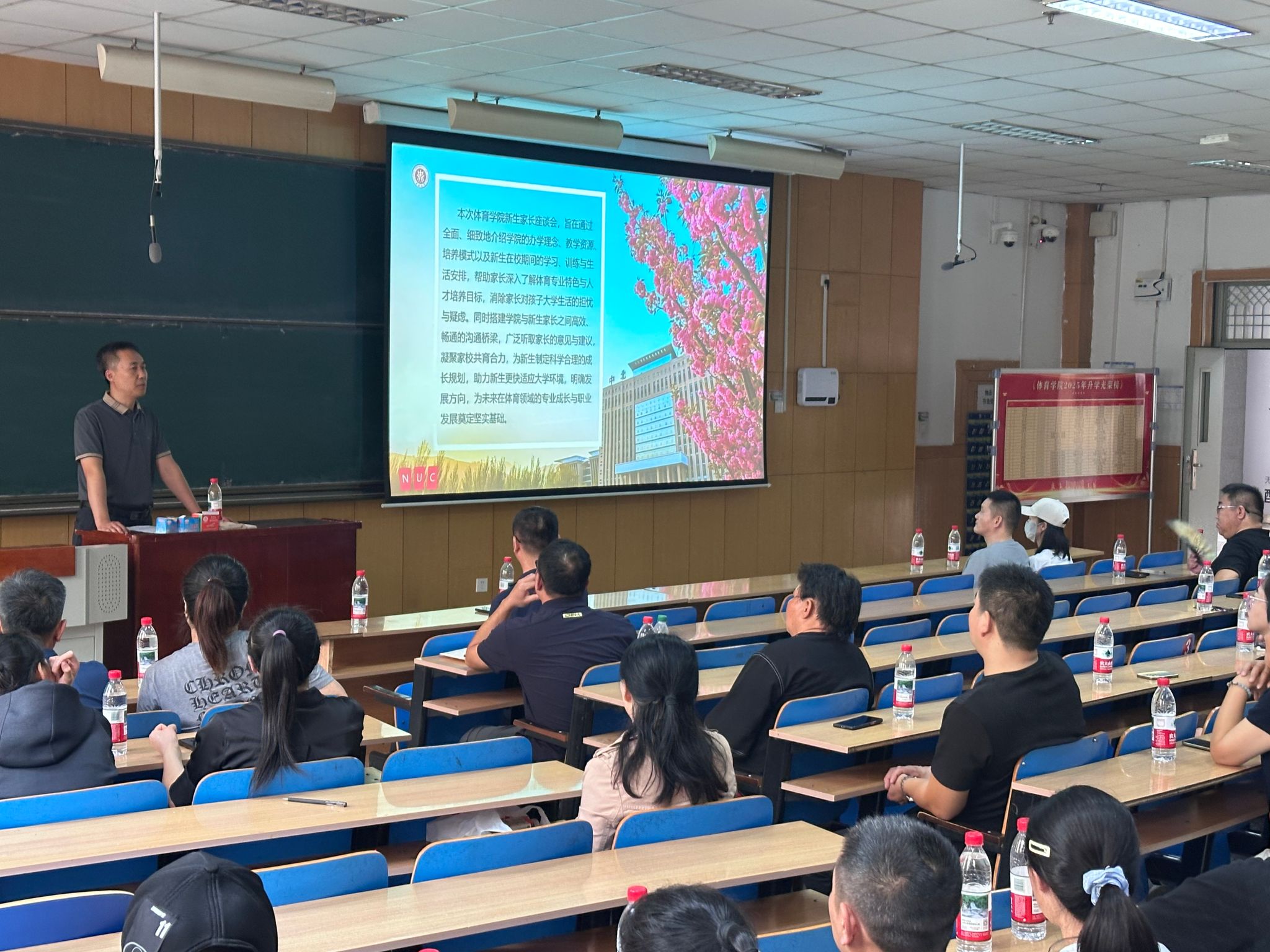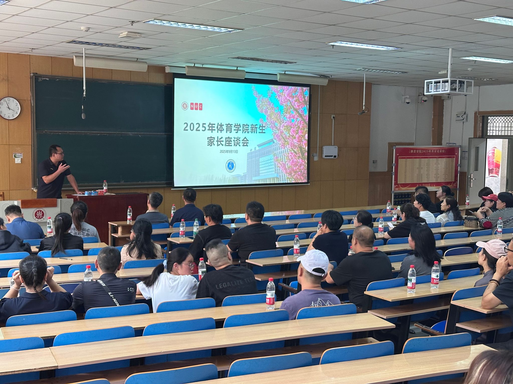 2025年9月13日下午,体育学院25级新生家长座谈会在11108教室举行。体育学院党委副书记李建国、副院长贾谊、辅导员参会。