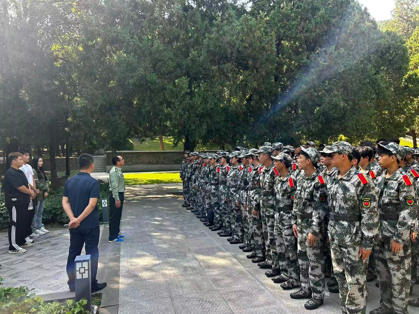2025年9月14日下午,体育学院在柏林园召开2025级新生军训动员大会。十一营营长兼教导员、体育学院党委副书记李建国,十一营政治指导员王卫兵,十一营副营长常永申、全体教官及全体新生兼职辅导员出席会议。