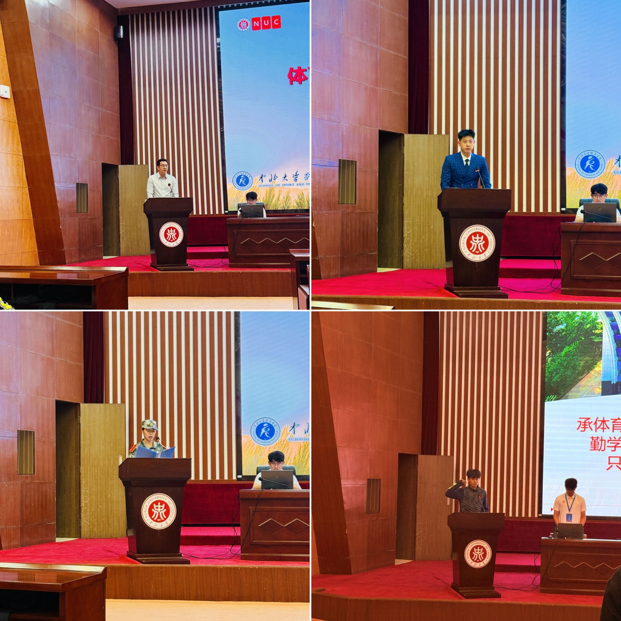 新生代表文冠方在发言中表达了加入中北体育大家庭的喜悦,并承诺将以青春和汗水奋力追逐体育梦想。在校生代表、院学生会主席韩金鑫以“致知于行”的校训为引,鼓励新生在训练、学习与社会实践中不断突破自我,将个人成长融入学校“双一流”建设进程中。教师代表、新生班主任王晓鹏寄语新生,希望他们珍惜大学时光,在自律与坚持中锤炼过硬本领,在体育精神的引领下成长为有理想、有担当的新时代体育人。