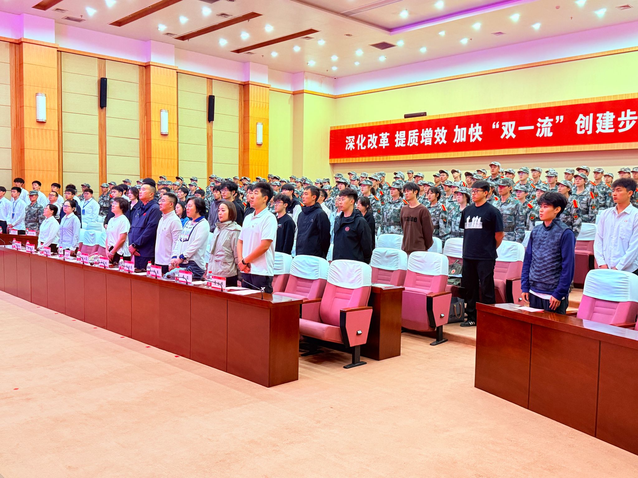 典礼在嘹亮的国歌声中拉开帷幕。首先,在学生代表王诗语同学的带领下,全体新生庄严宣誓。誓言铿锵有力,承载着承体育之魂、砺拼搏之志的信念,彰显出铸强健体魄、担时代重任的担当,也传递出勤学明理、笃行致远、训学兼修、知行合一的追求,更表达了只争朝夕、不负韶华、强体报国、矢志未来的坚定志向。