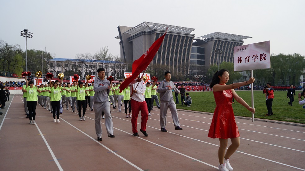 上午八点整田径场上欢声如潮,在全校师生的注目下,各院方队迈着整齐的步伐入场,以热情饱满的姿态向大家展示了各自学院的风采,其中体育学院的180方队尤为抢眼,队员平均身高180cm,他们迈着整齐划一的步伐,精神抖擞,成为众多方阵队伍中一道亮丽的风景线。