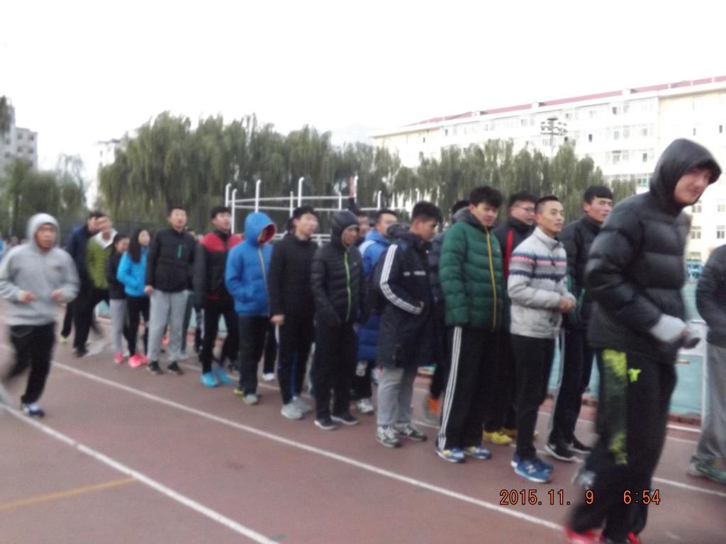 2015年11月9日在我院各系老师的亲切关怀下,由学生会负责人王老师带领学生会各部门成员悉心组织安排了“阳光体育,健康晨跑”早操活动。目的是为鼓励大一新生以崭新的面貌开启大学生活。