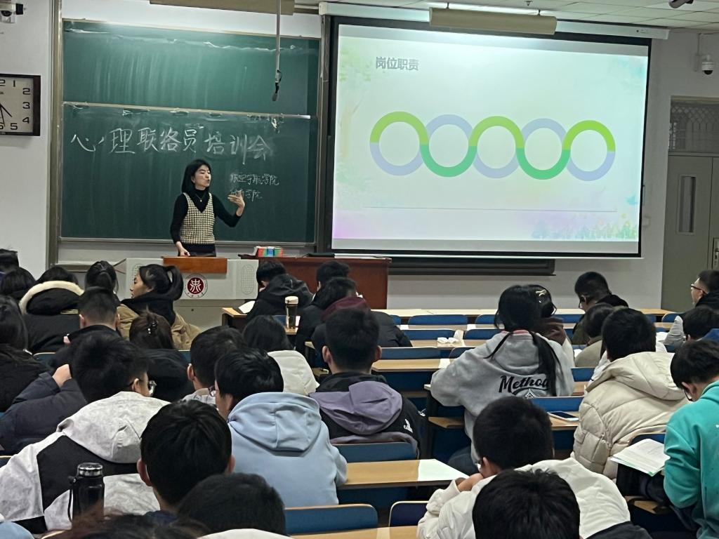 培训中,高老师首先明确了心理委员的各项职责。一是加强心理知识学习,做好学校与同学间的“传声筒”,在班级积极宣传心理健康知识。二是发挥组织能力,策划心理班会、趣味游戏活动,或安排观看心理主题影片,普及心理健康理念。三是密切关注同学心理状态,热情提供倾诉空间,给予心理支持与援助,遇严重心理危机时,确保早察觉、早上报。