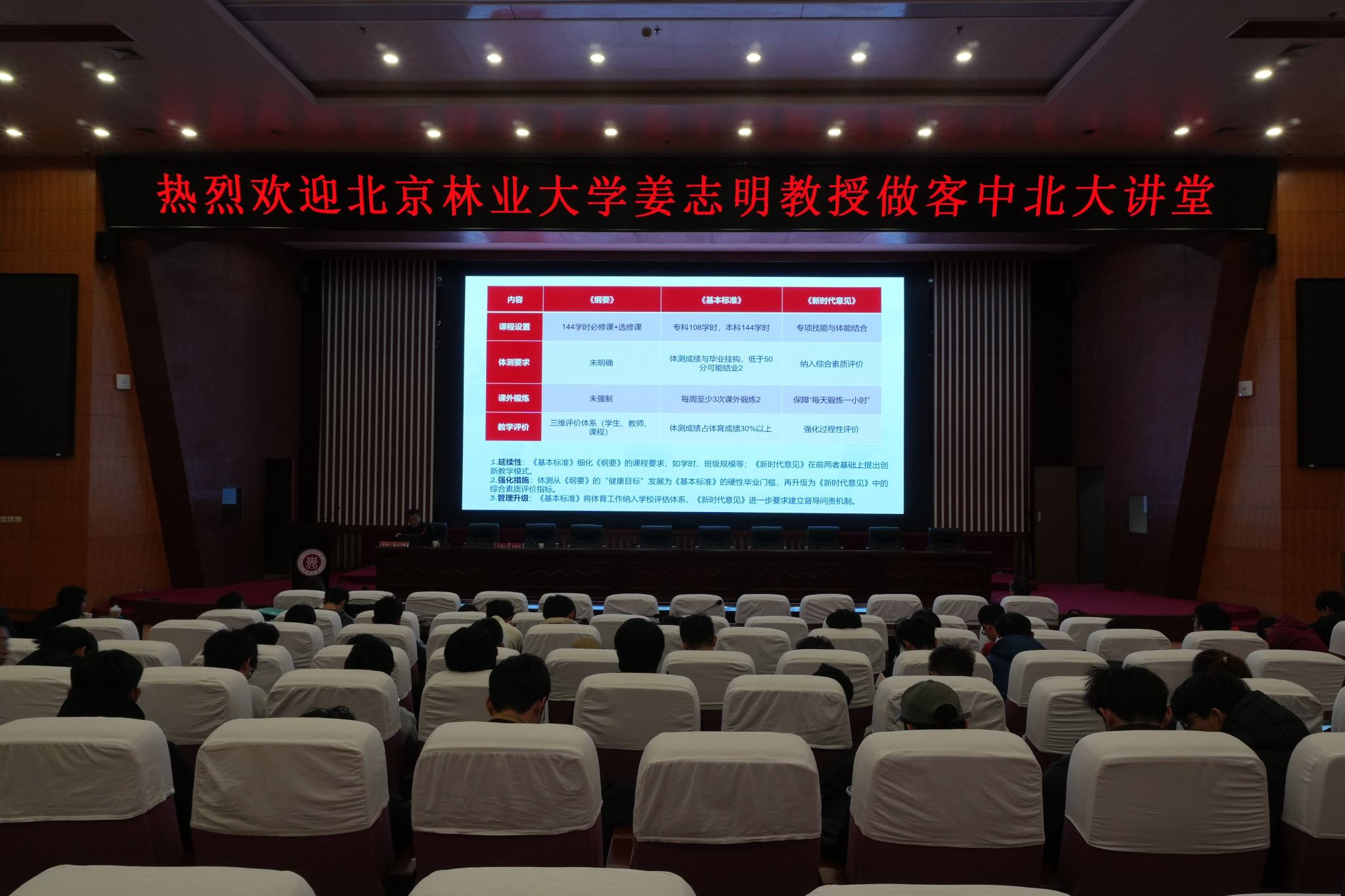 2025年10月17日,体育学院邀请北京林业大学体育教学部教授姜志明做客中北大讲堂。本次讲座由体育学院党委副书记李建国主持,学校200余名师生参加讲座。