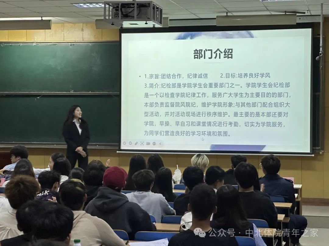 接着,各部门部长轮流上台,对本部门的工作职责、特色活动及未来工作规划等进行了详细介绍。每一个部门都以其独特的魅力吸引着新成员们的目光,激发了大家加入的热情与期待。