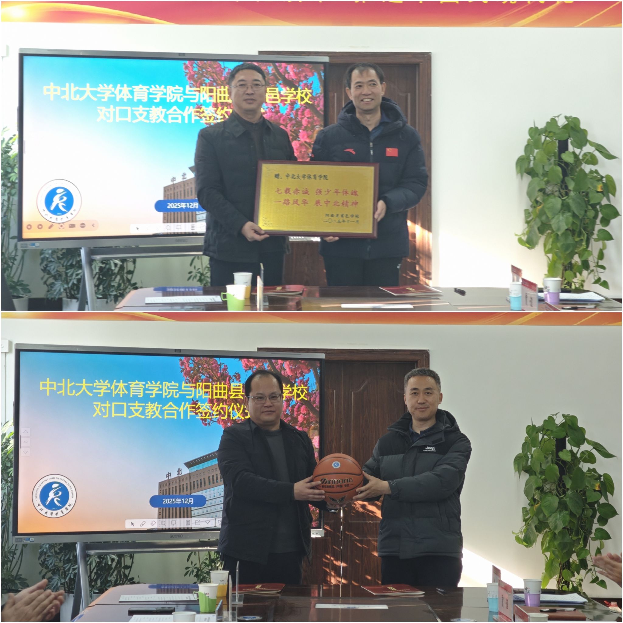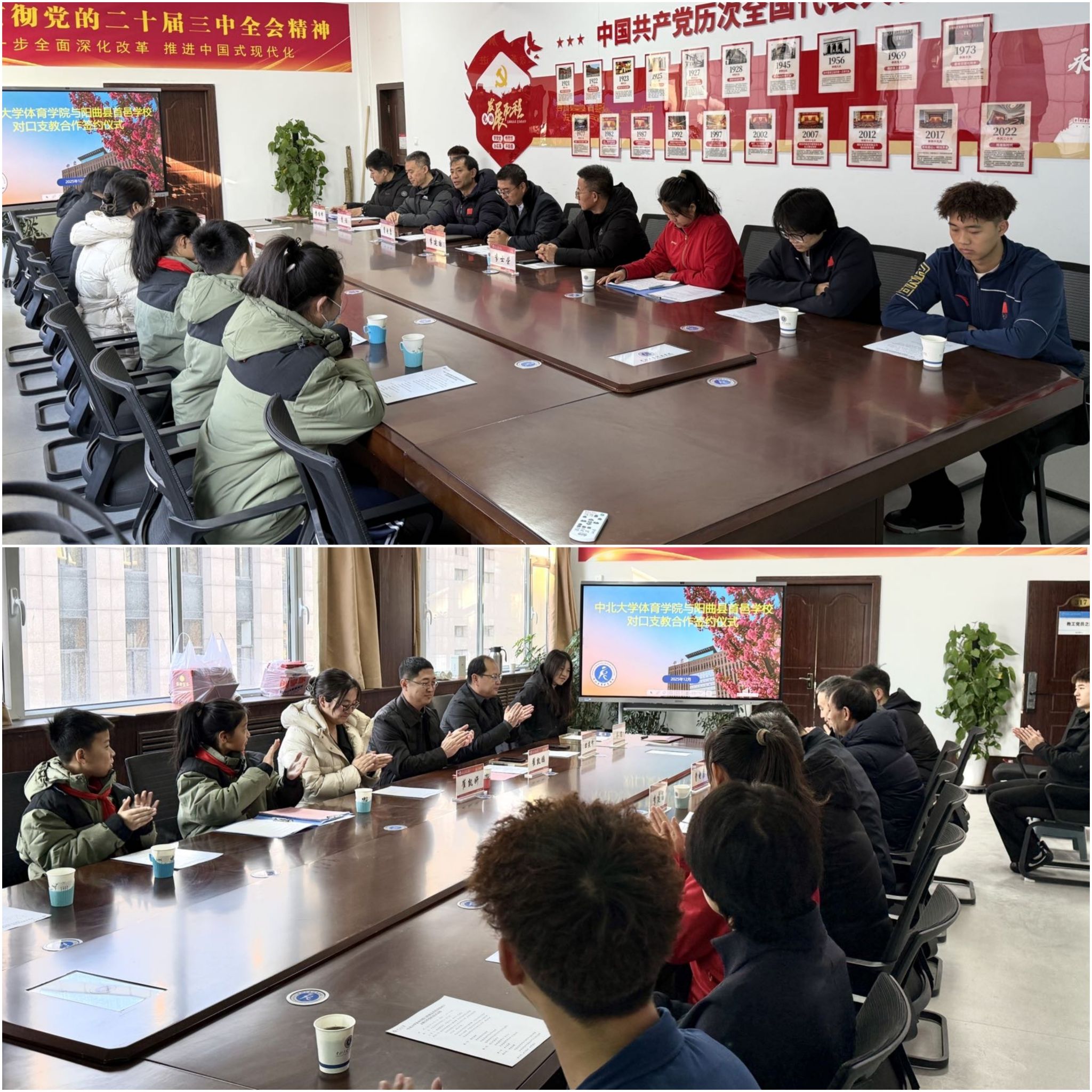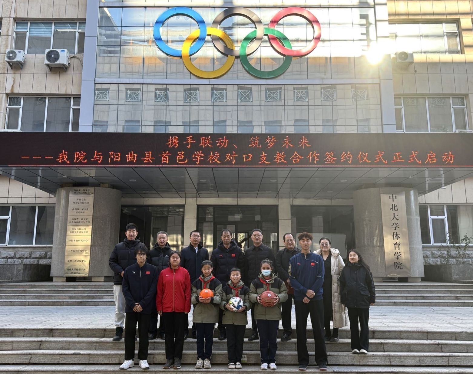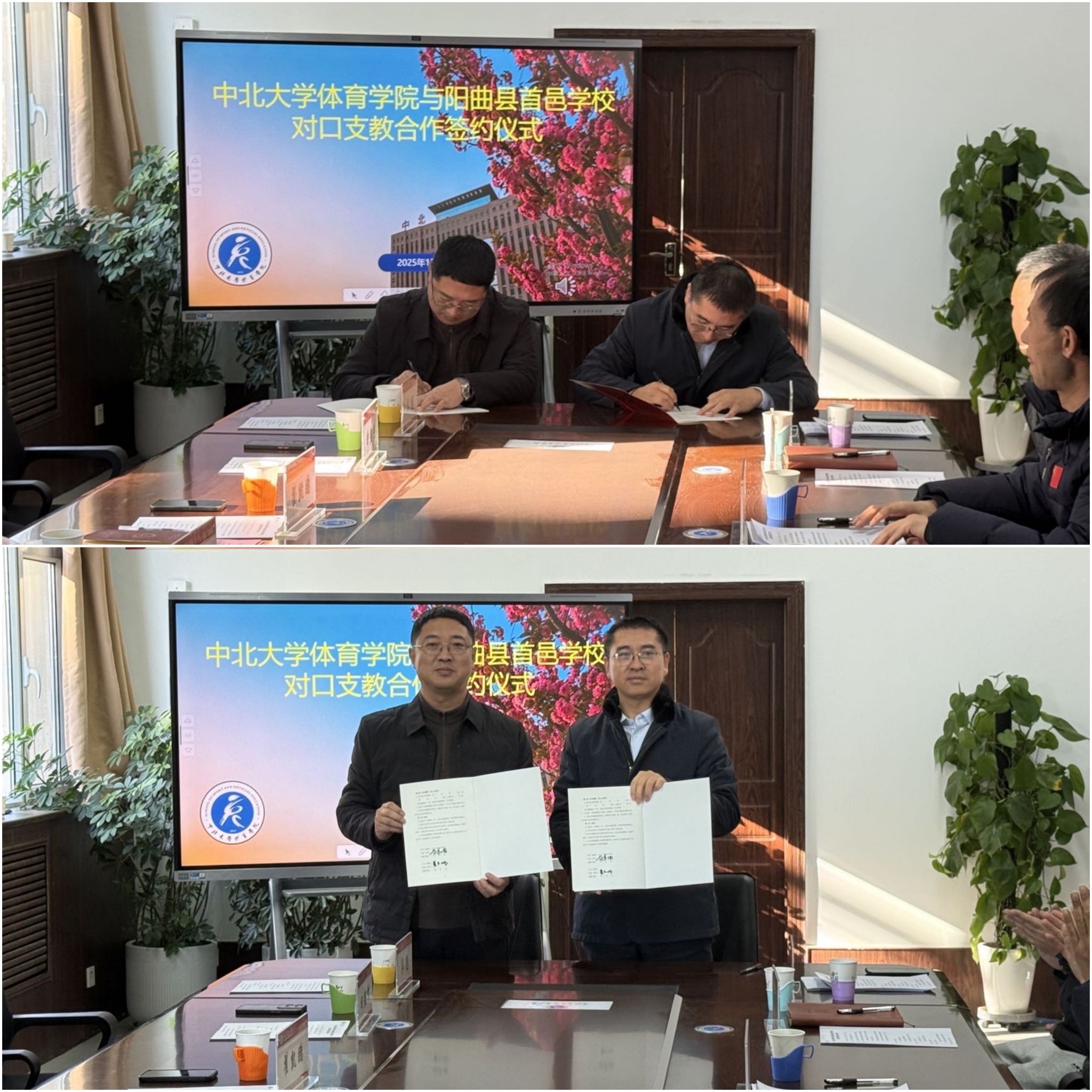 2025年11月28日,中北大学体育学院与阳曲县首邑学校对口支教合作签约仪式在体育学院317会议室隆重举行。体育学院党委书记曹电康、党委副书记李建国、副院长贾谊,阳曲县首邑学校校长翟凯鹏、副校长田燕峰,及双方相关教师、学生代表共同出席。