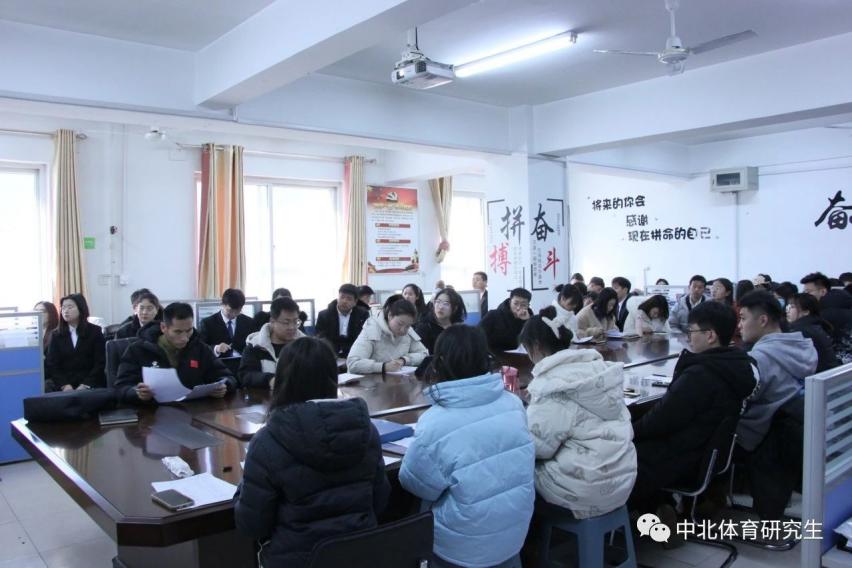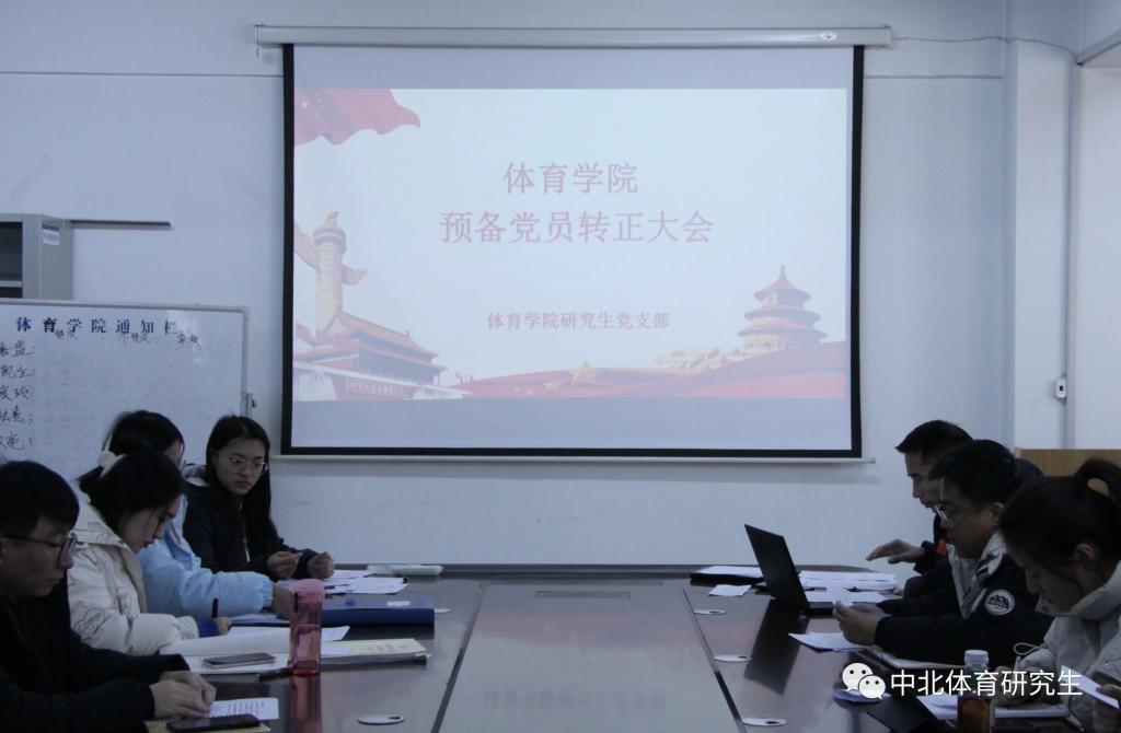12月21日下午,我院研究生党支部在体育学院研究生教室(三)召开“2023年秋季预备党员转正大会”及“2023年秋季发展对象思想答辩会”。会议由研究生党支部书记牛会康同志主持,参加此次会议的有研究生党支部正式党员、预备党员和入党积极分子。