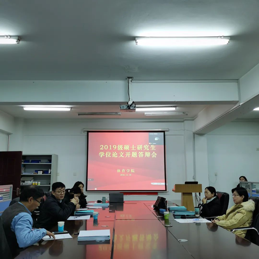 12月24日至1月7日,我院六层研究生教室举行2019级研究生学位论文开题答辩会。开题答辩会特别邀请上海体育学院戴国斌教授、曹振波教授,山西省体育科学研究所董建国研究员、山西大学刘生杰教授、忻州师范学院张翔教授担任各小组评委主席,我院各研究方向学科带头人、导师出席本次开题答辩会,参加答辩的2019级研究生共42名,我院2020级全体研究生到场旁听学习。