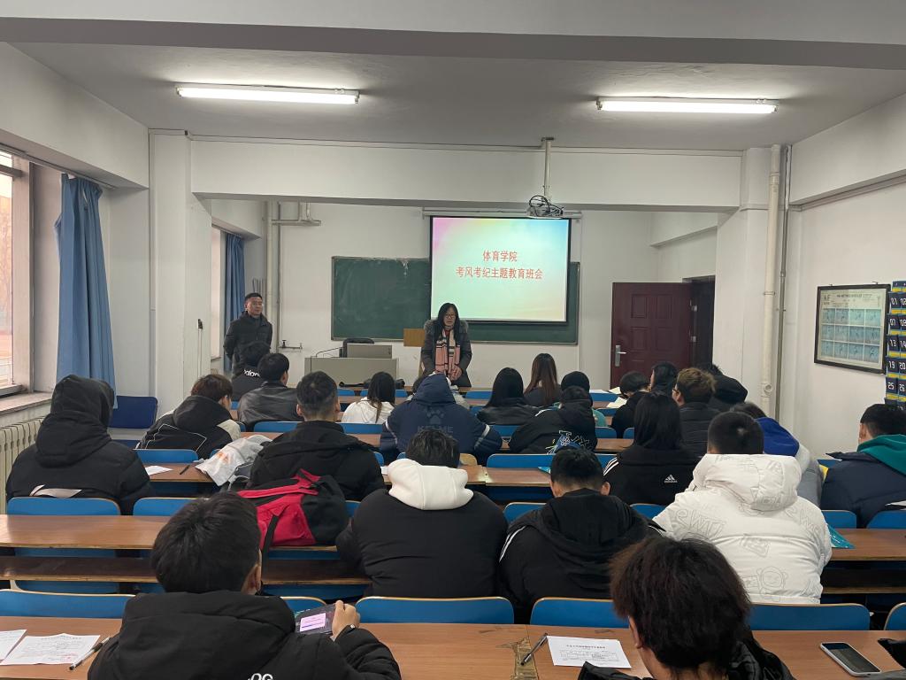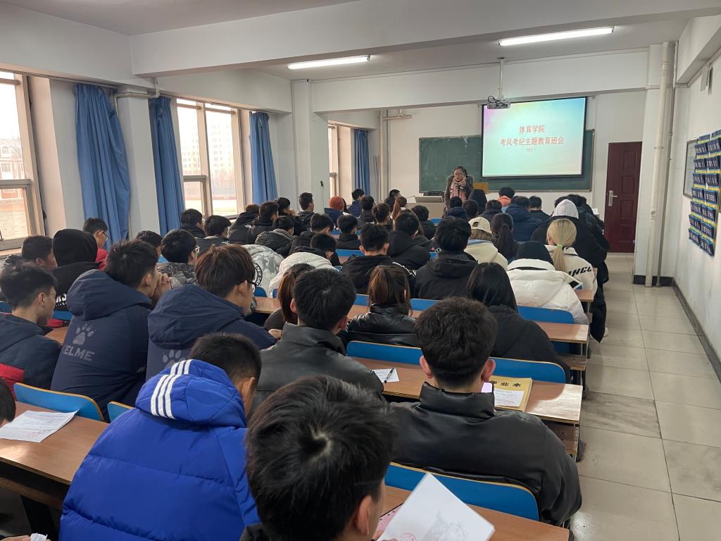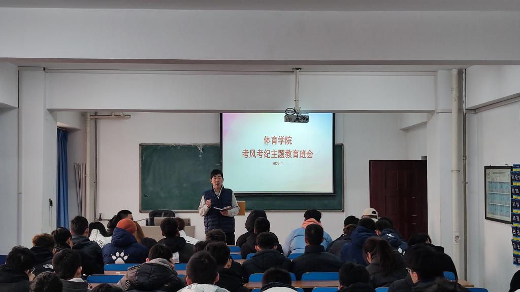 为进一步加强元旦假期、寒假前后学生安全工作,确保学校疫情防控各项部署和措施落地落细落实,保障学生的生命安全和身体健康,提升学生考风考纪规则意识,2021年12月-2022年1月,体育学院各班召开了多次假期前安全教育暨考风考纪教育主题班会。会议由各班主任主讲,邀请学院党委副书记贾鹏、教学科科长武燕参加。