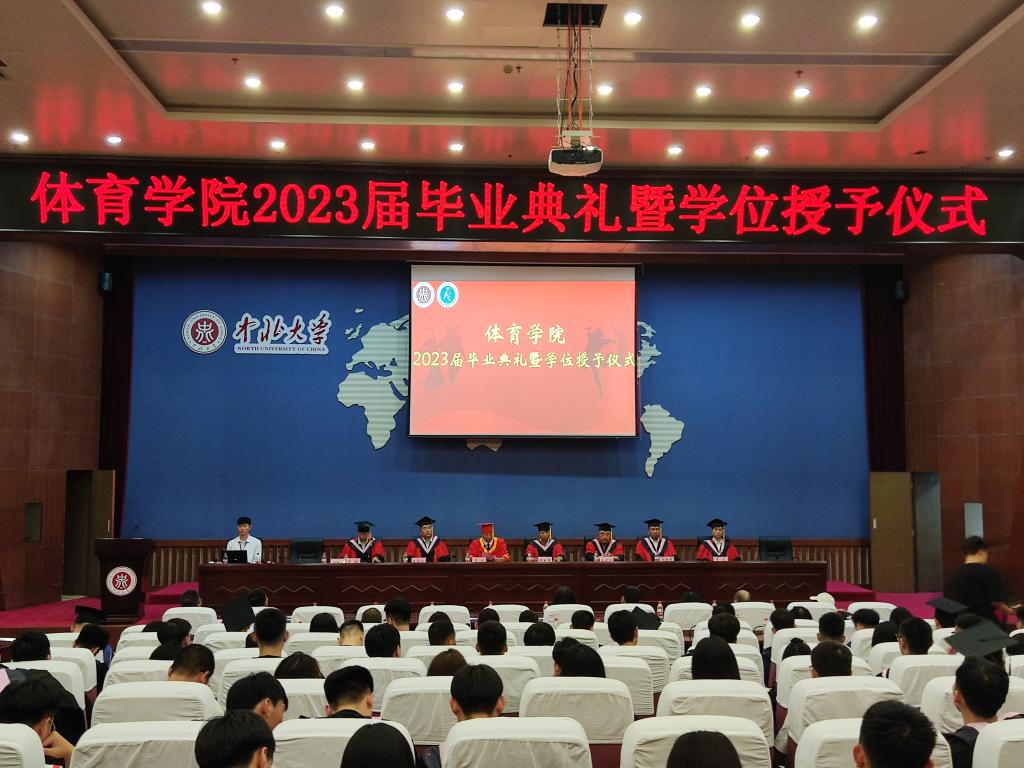 2023年6月19日上午,体育学院2023届毕业典礼暨学位授予仪式在图书馆五层学术报告厅隆重举行。院党委书记曹电康、院长吴剑、院党委副书记贾鹏、副院长王晓刚以及各系主任、科室负责人、教师代表和全体辅导员老师出席,体育学院2023届全体本科生和研究生参加了学位授予仪式。毕业典礼由院党委副书记贾鹏主持。