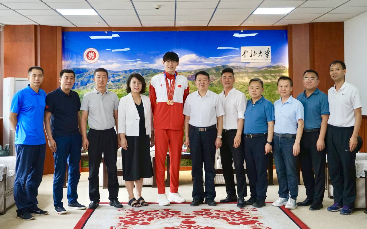沈兴全向孟明宽同学及窦勇涛教练和陈丽莹老师表示祝贺,感谢他们为国家、为山西、为学校争得了荣誉。希望孟明宽同学再接再厉,在今后各项比赛中取得更好成绩,金牌含金量越来越高,未来的路越走越宽,向全世界展现中北学子的风采。同时希望相关部门创新工作,树立好、宣传好身边的榜样,全面展示优秀学子的拼搏精神,引领带动全校学生积极向上、成长成才,为进一步加强校风学风建设、培养更多优秀人才而不断努力。