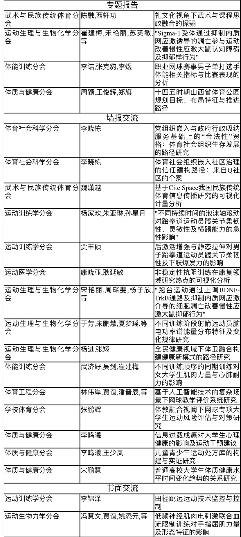 2023年8月31日,中国体育科学学会公布了第十三届全国体育科学大会论文录取结果,体育学院共计21篇论文入围,录用论文涉及武术与民族传统体育、运动生理与生物化学、体能训练、体质与健康等分会板块。其中,专题报告4篇,墙报交流15篇,书面交流2篇。