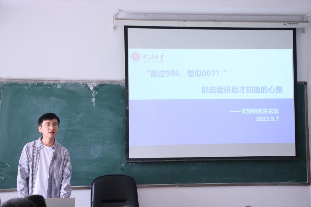 9月6日上午,体育学院2023年第004期文野研究生论坛在我院一楼多媒体教室顺利举行。本次特邀中北大学体育学院2021届毕业生、上海体育大学在读博士雷猛猛主讲,主题为《“苦过996,卷似007?”:那些读研才知道的心路》。本次论坛由体育学院牛会康老师主持,我院全体研究生参加。