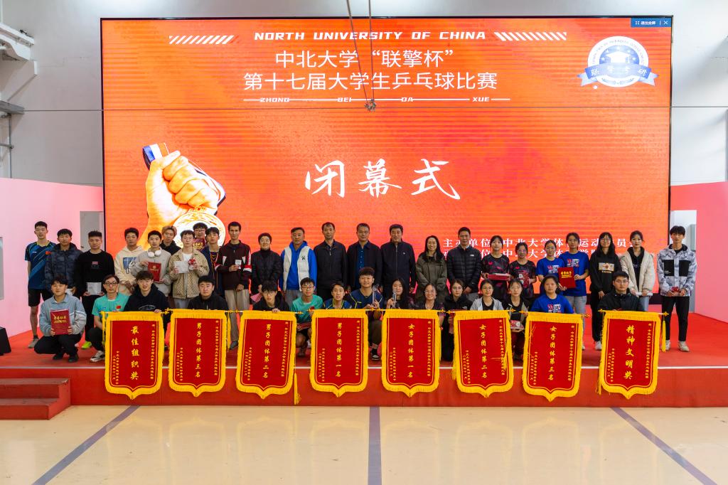 11月5日下午4时,由中北大学体育运动委员会主办,中北大学体育学院承办的中北大学第十七届大学生乒乓球赛在校东区训练馆拉下帷幕,本次比赛中有十八个学院共计400 余名学生参加。经过4日、5日两天的共72场次的激烈角逐,最终决出,男子团体冠军:研究生院;亚军:材料科学与工程学院;季军:机械工程学院。女子团体冠军:化学与化工学院;亚军:经济与管理学院;季军:环境与安全工程学院。精神文明奖:能源与动力工程学院。最佳组织奖:信息与通信工程学院。