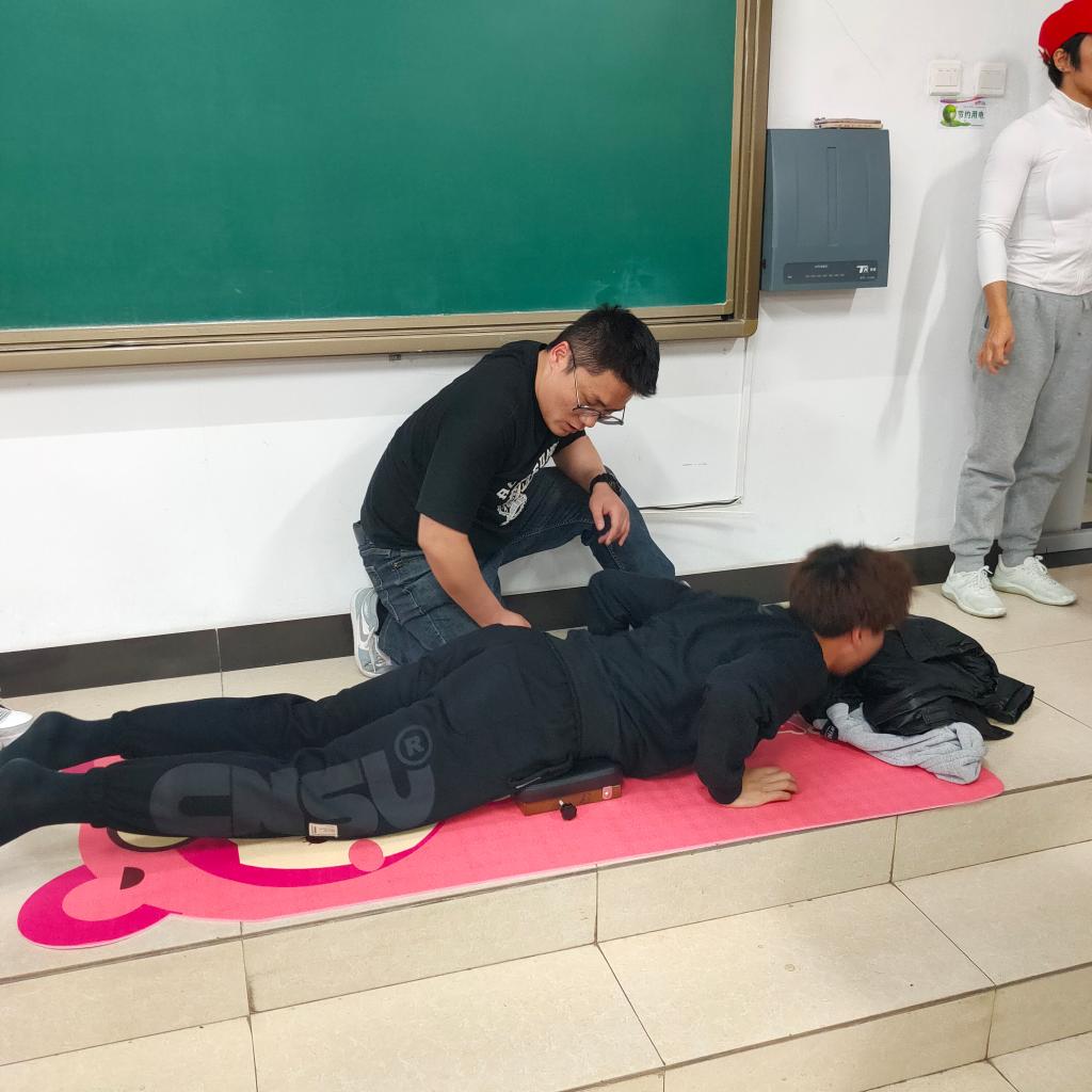 2023年11月7日下午,省体育局运动康复专家杨亮老师带领十余名学生在15301教室,为体育学院200名师生讲解运动中损伤原理及损伤后的科学治疗方法。此行是应我院广大师生要求,第二次来做运动损伤治疗讲解。
