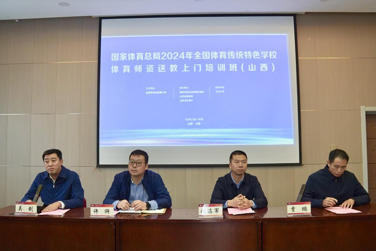 2024年10月14日至19日,国家体育总局2024年全国体育传统特色学校体育师资送教上门培训班(山西)在我校举行。本次培训由国家体育总局青少司主办,国家体育总局教练员学院、山西省体育局、山西省教育厅承办,中北大学协办。在开班仪式上,国家体育总局教练员学院培训主管许浒、山西省体育局青少处处长张海军、中北大学体育学院院长吴剑出席并致辞。他们强调了本次培训的重要性和意义,并对参训教师提出了期望和要求。开班仪式由中北大学体育学院党委副书记贾鹏主持。