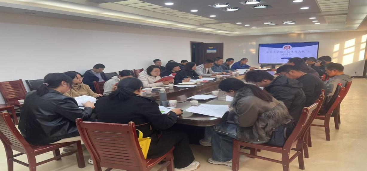 2024年10月25日下午,中北大学第二届学生体育文化节协调会在体育学院二层会议室召开,学生工作部、校团委、后勤管理部、校医院的有关领导,以及各学院副书记参加了本次会议。会议由体育学院副院长贾谊主持。贾院长首先介绍了本次体育文化节开幕式和赛事的具体情况,并对各部门的工作进行了安排。随后,学生工作部副部长崔亚宣读了本次文化节最佳组织奖的评选办法,并对各项目的值班领导做了安排。体育学院院长吴剑针对中北大学学生体质健康现状及干预措施以及体育学院开展体育活动和校内赛事情况进行了总结。学生工作部部长顾宁强调了学生参加体育运动和举办校内赛事的重要性,不仅对学生身体素质有所提高,对学生心理问题和团队协作、抗挫折能力等都会有积极正向引导。