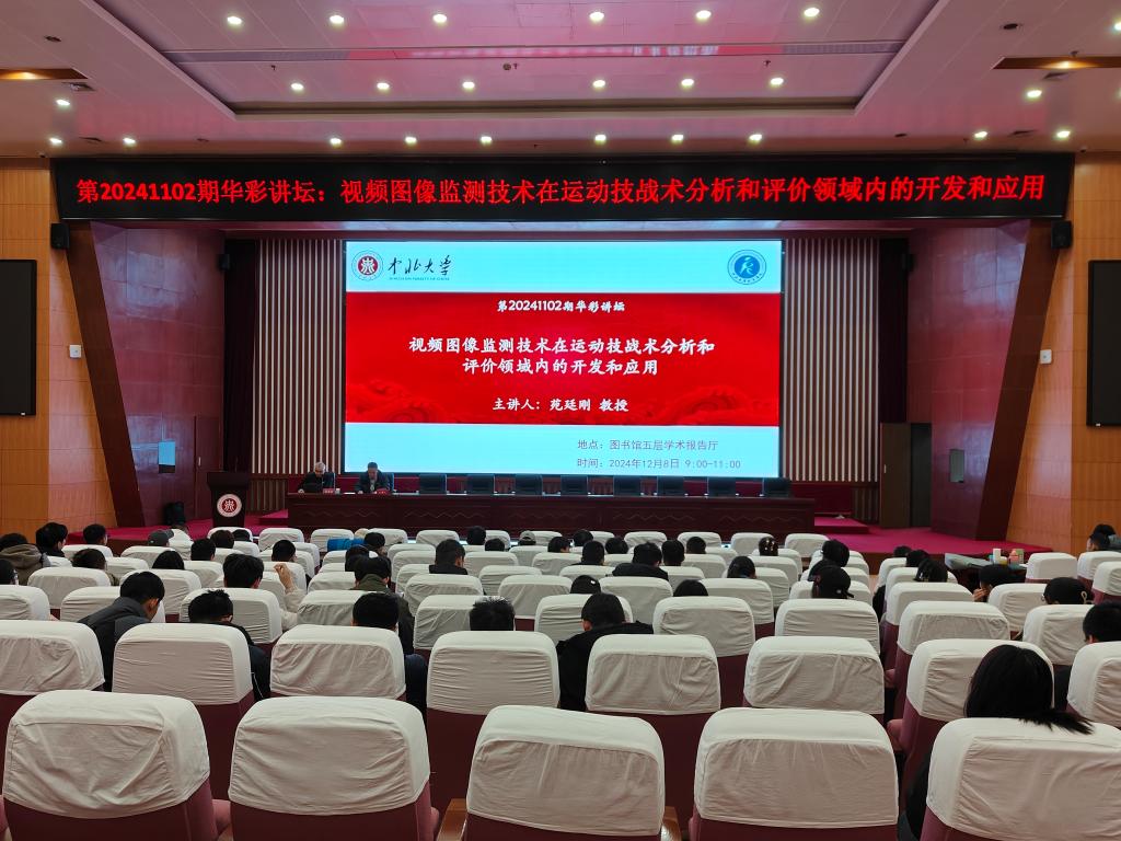 12月8日上午,中北大学华彩讲坛第20241102期于图书馆五层学术报告厅正式开讲。本次讲坛特邀中国民盟盟员、研究员、博士生导师、国家体育总局体育科学研究所研究员苑延刚教授主讲,主题为:视频图像监测技术在运动技战术分析和评价领域内的开发和应用,由体育学院副院长贾谊主持,全校二百余名师生参加本次讲坛。