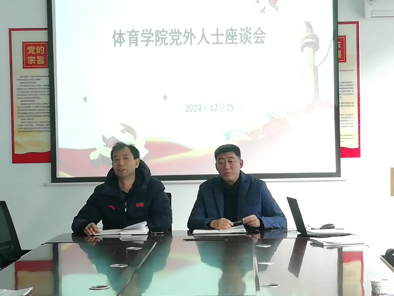 2024年12月25日下午,体育学院党委在317党员之家成功召开了党外人士座谈会。学院党委书记曹电康、院长吴剑以及学院的多位教师和学生代表共同出席了会议。与会人员包括群众及各民主党派人士,现场气氛热烈而融洽。