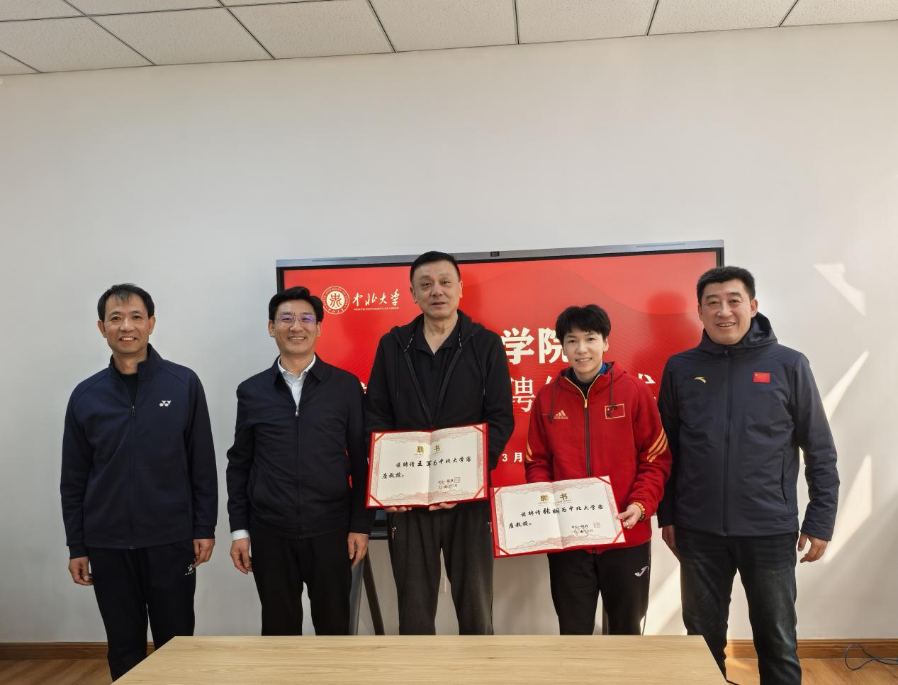 3月10日下午,在体育学院办公楼三层会议室,举行了张娴、王军客座教授聘任仪式。中北大学副校长来志斌、体育学院党委书记曹电康、院长吴剑参与并进行座谈。座谈中,吴院长介绍了体育学院的发展历程,以及我校男子排球队目前的建设情况;来志斌副校长就中北大学的发展历程、办学及发展情况进行了介绍,并对我校体育工作的发展提出了意见。此外,双方就体育教学、专业队训练进行了深入交流。最后,来志斌副校长为两位专家颁发中北大学客座教授聘书。