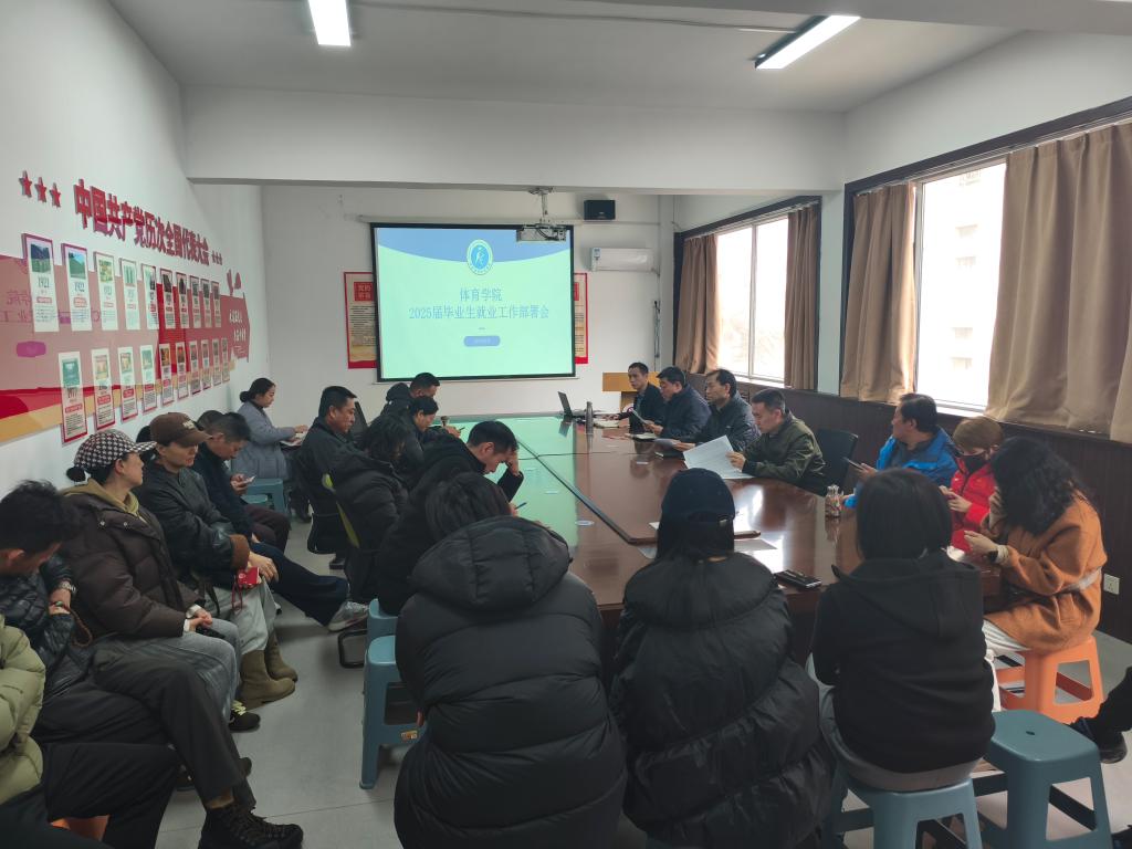 为切实做好2025届毕业生就业工作,2025年3月11日下午,体育学院于院楼三层党员之家召开了2025届毕业生就业工作部署会。院党委书记曹电康、院长吴剑、党委副书记贾鹏、副院长贾谊出席会议,全体专项教练、专业课教师、导师、毕业生班主任参会。