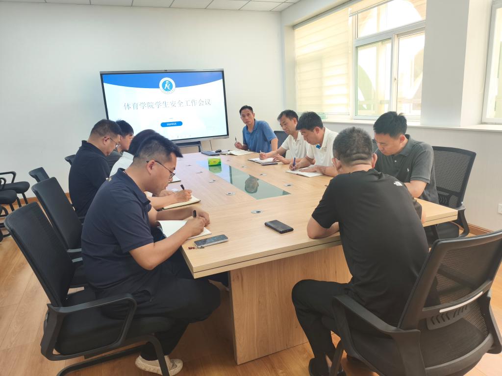 为深入贯彻落实学校关于校园安全工作的部署要求,切实做好毕业季学生安全管理与服务工作,2025年6月9日上午,体育学院在学院会议室召开学生安全工作会议,全面部署毕业季及暑期校园安全重点工作。体育学院党委书记曹电康、院长吴剑、党委副书记贾鹏、副院长贾谊及各科室负责人、辅导员、班主任出席会议。会议由党委副书记贾鹏主持。