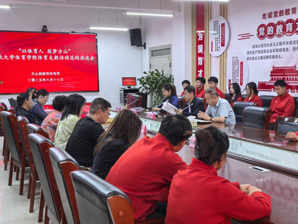 2025年6月17日,“以体育人,筑梦方山”体育支教活动总结座谈会在方山县教育体育局会议室召开,标志着中北大学体育学院本轮方山县体育支教工作顺利收官。会议由县教体局主办,教体局领导、各服务学校校长及我院支教团师生参加。