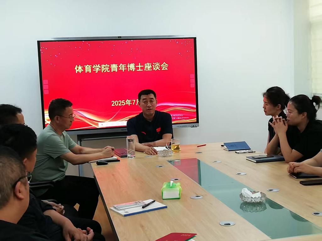 为加快推进学院人才队伍建设,充分发挥青年博士教师在教学、科研、育人等方面的作用,2025年7月2日下午,体育学院在311会议室召开青年博士座谈会,会议由学院院长吴剑主持,全院青年博士参加了会议。