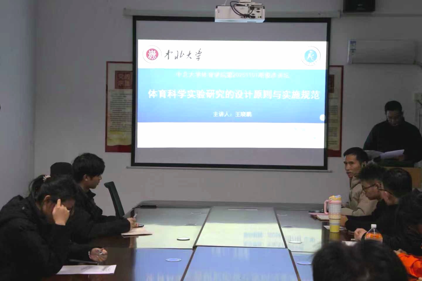 2025年12月17日下午,由中北大学体育学院主办的“俊彦讲坛”第20251101期在317会议室成功举办。本次讲坛由体育学院科研科科长牛会康主持,邀请体育教育训练学专业王晓鹏老师担任主讲,围绕“体育科学实验研究的设计原则与实施规范”这一主题展开深度分享。在校研究生积极参与,共同聆听了讲座。