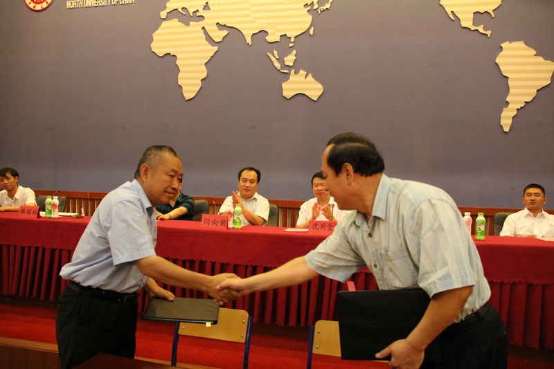 随后体育与艺术学院院长刘定一与山西省偶然食品有限公司总经理韩国林,分别代表校企双方在《中北大学与内蒙古伊利实业集团股份有限公司资助贫困生奖学金合同书》上签字,签字结束后双方互换了协议,并合影留念。根据协议,内蒙古伊利实业集团股份有限公司将每年出资10000元用于资助体育与艺术学院的贫困大学生,全年共资助10名,每人1000元,资助年限为3年;若今后伊利集团与我校双方在发展和相互配合上呈现出良好的发展势头,将进行续签增加助学金额和助学人数,将此作为试点进行全国推广。