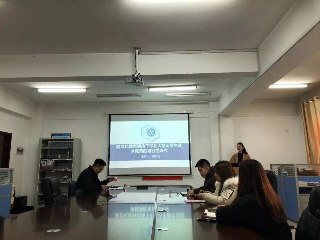 本期学术沙龙主题为“跨文化教育视角下中北大学留学生武术教育的可行性研究”。主讲人靖新超的研究以中北大学为个案,运用教育学、民族传统体育学、跨文化教育学等相关学科的理论与方法,分析诊断开设留学生武术课程存在的困境,确立留学生武术教学的目标,建立留学生武术教学课程体系。旨在为来华留学生教育提供参考,为中国武术的国际传播与发展提供一定的借鉴。在面向“一带一路”推进我国高等教育国际化发展的大背景下,跨文化教育的核心价值就是接受并欣赏文化差异;各种文化均有其特性,应相互尊重、相互学习,开展来华留学生武术教学不仅是留学生身心发展的主观需求,也是中国文化国际传播的客观需要;不仅提高了留学生跨文化适应能力,也为中国武术传播奠定人才基础。参会同学就跨文化背景下的留学生武术教育展开了热烈的讨论。