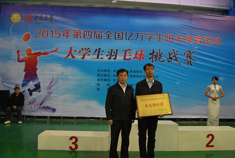 10月17日至18日,2015年第四届全国亿万学生阳光体育运动大学生羽毛球挑战赛在我校成功举行。比赛由中国大学生体育协会羽毛球分会主办,我校承办。来自全国18所高校的150名余名运动员与60名专业的裁判员参加。