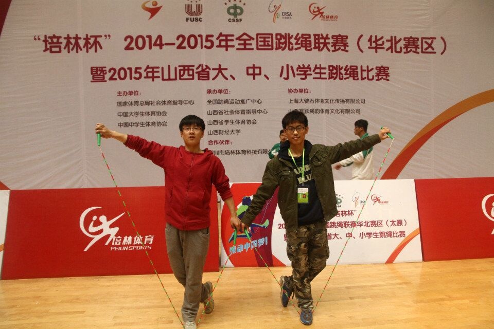 4月19日上午,“培林杯”2014-2015年全国跳绳联赛(华北赛区)暨山西省第一届大、中、小学生跳绳比赛在山西财经大学正式拉开帷幕。