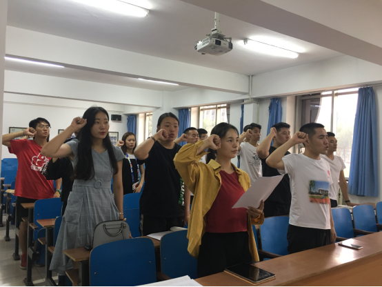 刘荣强调,同学们作为共产党人要不忘初心,牢记使命,坚持党领导一切的初心、恒心和忠心。保持全心全意为人民服务的赤子之心与实现中华民族伟大复兴的信心,做好新时代共产主义接班人。随后,在体育学院团委副书记怀鹏归的带领下,全体党员起立宣誓,她提出,学生干部要坚定理想信念,永葆信仰之心,加强学习,用党的创新理论武装头脑。