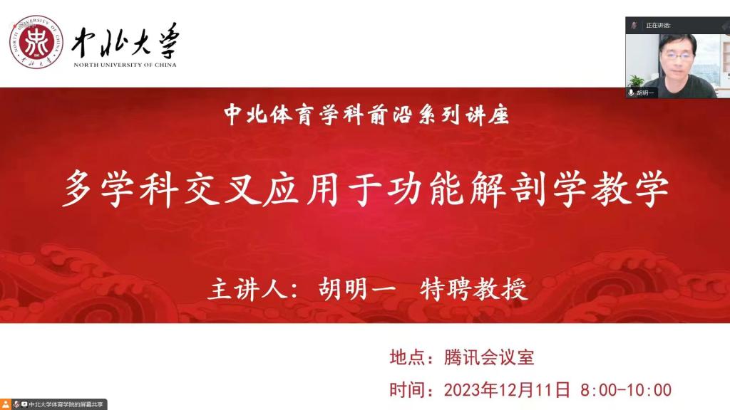 12月9日-12月12日,我院主办了中北体育学科前沿系列讲座。本次讲座采取线上与线下相结合的方式,特邀清华大学于洪军教授、上海体育大学高炳宏教授、华中师范大学陈元欣教授、华南师范大学刘鸿优教授、广州新华学院胡明一教授等六位知名专家进行讲学。讲座分别由吴剑院长、王晓刚副院长、刘鸿宇教授、贾谊教授、宿继光副教授主持,我院青年教师、全体在校研究生、本科生参加。