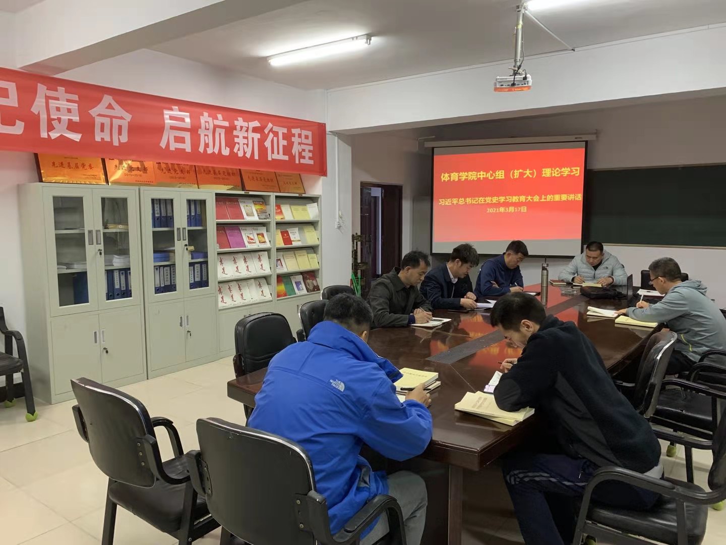 3月17日上午,体育学院党委在学院三层党员之家室召开了党委中心组(扩大)理论学习会,学院领导班子成员、党委委员、各支部书记、各系(部)主任参加了会议,会议由院党委书记王政宇主持。重点学习《习近平总书记在党史学习教育动员大会上的重要讲话》、《中国共产党党员权利保障条例》。
