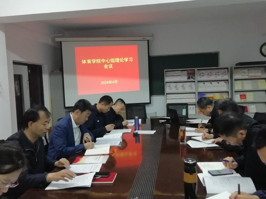 2024年4月16日上午,在306党员之家,体育学院召开了中心组理论学习会议。会议由学院党委书记曹电康主持,学院党委委员、领导班子成员、支部书记、科长、辅导员参加会议。