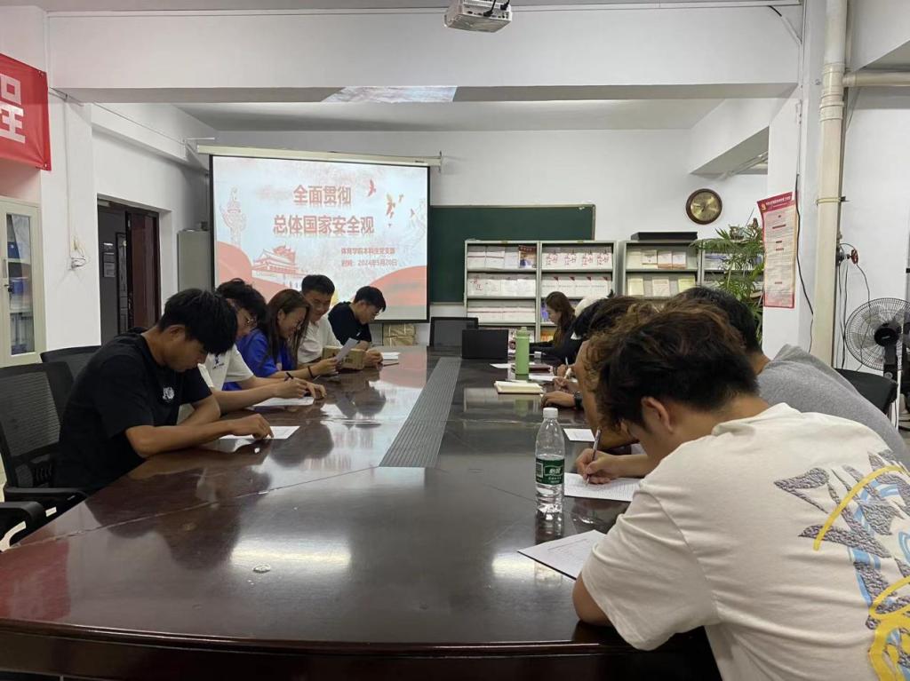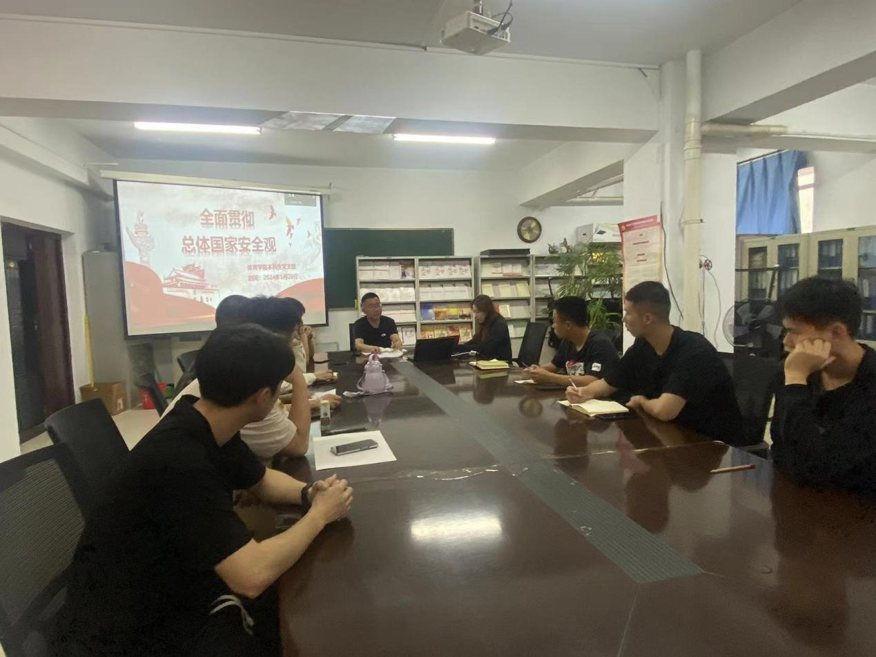 为引导广大党员青年深刻学习领会、全面贯彻落实总体国家安全观,切实增强维护国家安全的责任感使命感,积极践行总体国家安全观,体育学院本科生党支部于5月20日上午9:30在学院三层“党员之家”召开“全面贯彻总体国家安全观”学习会议,本科生党支部全体党员参加,李士荣、李佳怿老师出席并担任主持人。