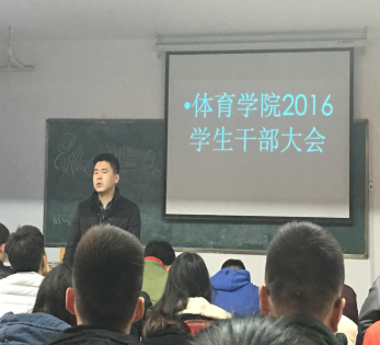 201631日,我院在学院一层多媒体教室召开了“体育学院2016年学生干部大会。学院党总支副书记贾鹏老师、学生科科长李士荣老师、团委书记唐伟老师、辅导员王华慧老师参加了本次大会。