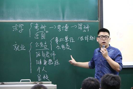 9月8日19:00,体育学院学生科王华慧老师在11305H给新生开展开学第一课。王老师对大学毕业后的不同发展方向分别作了详细的介绍,强调了大学是人生新的起点,要尽早确立目标,充分利用各种资源,合理分配自己的时间,努力朝这个目标前进。