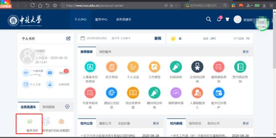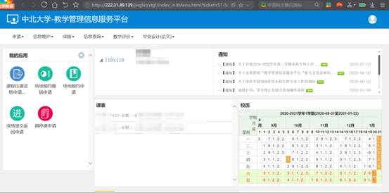 登录成功后,点击教务系统,进入教务系统,不需要二次输入用户名和密码,如下图: