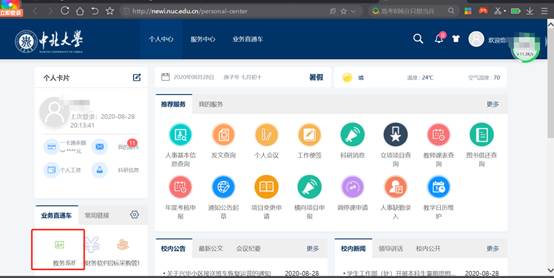 登录成功后,点击教务系统,进入教务系统,不需要二次输入用户名和密码,如下图: