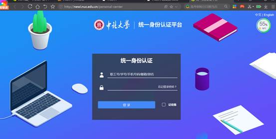一、系统登录方式:登录新信息门户系统(地址:http://newi.nuc.edu.cn,用户名密码为原数字化校园系统用户名和密码,如果是校外登录系统,需先登录学校vpn系统),登录界面如下图: